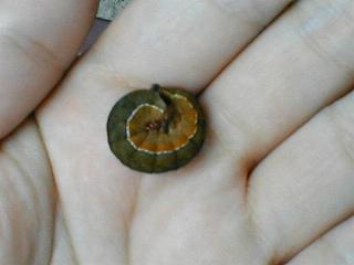 | 木立性チョウセンアサガオの葉っぱに新たな穴ができていた。見ると緑や黒の芋虫がいっぱい…!! 色は違うものの、細かい点で特徴が一致しているので同じ虫だと思う。ああ、気になる。こいつら何者なんだ。とりあえず、全部つまんで捨てた。捨てる前に写真をとったがうまく写らなかった(ヨトウムシ1)。もうヤケクソだ。デジカメ買ってやるー。もうちょっとしたらキャメディアの新しいのが出るからそしたら買うんじゃー。スーパーマクロで芋虫をとりまくるんじゃー!!!