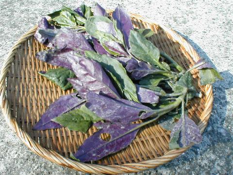 沖縄ではハンダマと呼ぶ。秋から冬にかけて取れる野菜で、みそ汁やジューシー(雑炊)にする。ハンダマをたくさん入れたジューシーは赤くなる。増血剤になると言われている(参考[広告]>『聞き書沖縄の食事』)。
