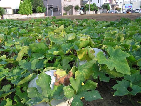 2007年9月初旬撮影 うちのまわりは東京都内だけれど、宅地の中に小さな畑があって四季折々の野菜を育てている。道からウリ科植物の蔓が見えたので近づいてみると…… 冬瓜だ! でもそこらの店にあるのと色も形もぜんぜん違う。スーパーの野菜コーナーにあるのは長細くて表面が緑色でツルツルしてる。この畑にあるのは丸くて白い。 実の表面にはこのとおり、産毛がびっしり生えている。毛が生えているのはまだ未熟な実だと聞いたことがあるが、熟すと毛が抜けちゃうということ? この畑のトウガンは自家用にしては多い気がするからどこかに出荷しているんだと思うけれど、普通のスーパーでは見たことがない。