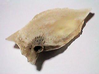 これまた、獣の骨らしいんですが、どの部分かはよくわからない。縦うねが入ってるので、ぱっと見ると貝みたい。でも骨だと思う
