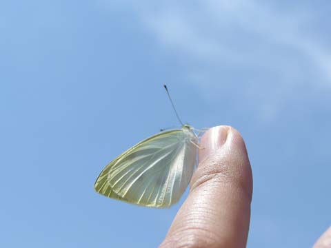 …これにはちゃんと黄色い部分がある。尻のほうまで黄色いからモンシロチョウだ。