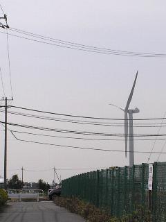 そんなことより、ちゃんとまわってるなー(あたりまえだけど)。っていうか、風がやむとちゃんと止まるんじゃん(それもあたりまえ)。羽長いよねー。なんでこんな長くて重そうなものが風の力だけでまわるんだろ。オモチャのかざぐるまはカラカラカラっとすごい速さでまわるのに、大風車はワサッワサッワサッとゆっくりまわるよね。いやいや、速さは回転数とはちがうぞ。あの羽の長さだもん。先端の速度をはかったら、きっとものすごいにちがいないのだわ。羽までかなりの距離があるはずだけど、くるっとまわって一番下まで来る時に、かすかに風を切る音がするよ。ああ、普段つかわない感覚を刺激されて見てるとめまいがする〜。