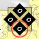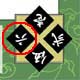 正面(カードの上方)からの攻撃ですから、お互いの一番上の数字を比べてください。 左図の例だと、東(攻撃側)が参(3)で、西(防御側)が〇(0)です。数が多い方を勝ちとします、この場合は東の勝ちです。 もし、攻撃側の数値が防御側の数値より小さかった場合、防御側が「防御に成功した」ことになります。この場合は勝負は付きません。防御側はあくまで防御するだけで反撃することはありません。 |
