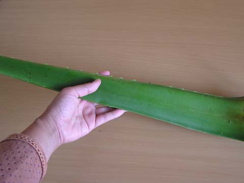 | ちなみにこれがアロエベラ(Aloe vera)。食用に売られているシロップ煮のアロエはたぶんこれである。観賞用のキダチアロエなんかよりはるかに大きく肉厚で、どのくらい大きいかというと… |