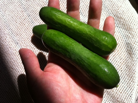 イボ無しのミニキュウリ。品種名はよくわからない。スーパーの地元産野菜のコーナーで5本130円だった。生で食べてみたところ、普通のキュウリと同じく美味しい。特にピクルス用の品種というわけではなさそう。埼玉県産。