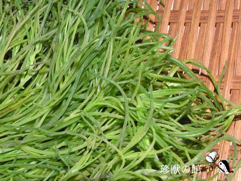 海草のヒジキに似て陸に生えるからオカヒジキ(陸鹿尾菜)という。初めて見た時は「もしや海草の仲間で陸に生えるものがあるのかしら」などと素人っぽい期待を抱いたりしたわけだが、オカヒジキはトンブリ(ホウキグサ)と同じくアカザ科で、海草のヒジキ(ホンダワラ科)とはなんの関係もないそうだ。
