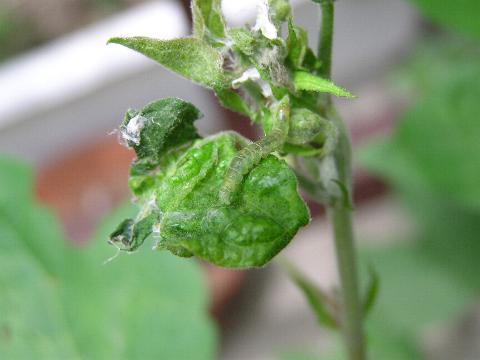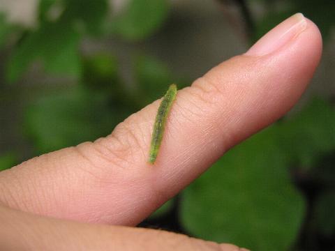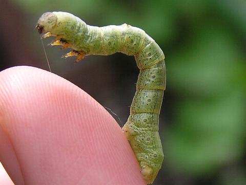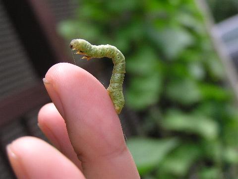 別名 シャクトリムシ 科名 シャクガ科 学名 ? 中名 ? 撮影日 2003/07/15 撮影地 東京都江戸川区 特徴 ・体長 50mm くらい ・胴のまんなかあたりに腹脚がない。 写っている植物はワタ(アオイ科)。