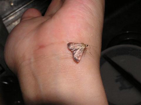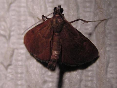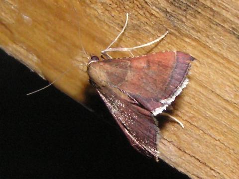 科名 メイガ科 学名 ? 中名 ? 撮影日 2003/08/14 撮影地 東京都江戸川区 特徴 ・触角が細く長い 左の写真では翅が光っているが[2]を見ると模様がある。メイガ科だとは思う。