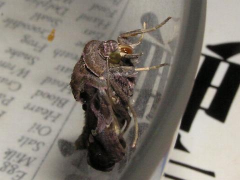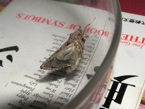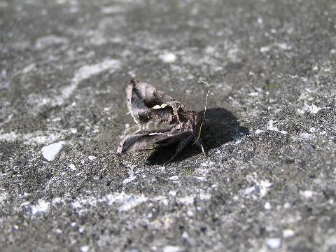 科名 ヤガ科 学名 Argyrogramma agnata 中名 銀紋夜蛾 撮影日 2003/12/09 撮影地 東京都江戸川区 特徴 ・幼虫から育てた個体 ・前翅の白い斑文 ・前翅に金色の鱗粉 他の写真 [1][2][3][4] |