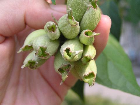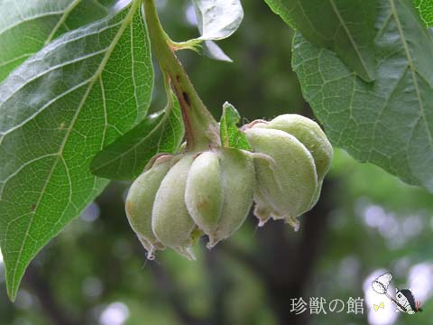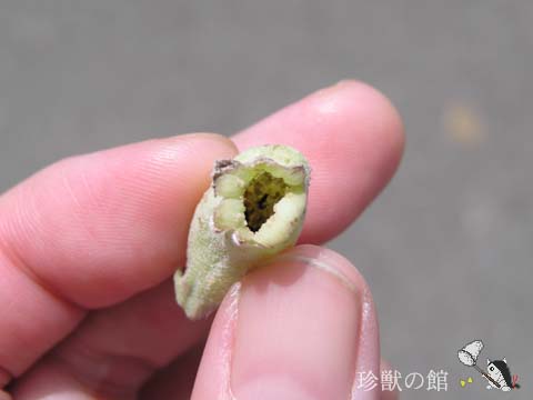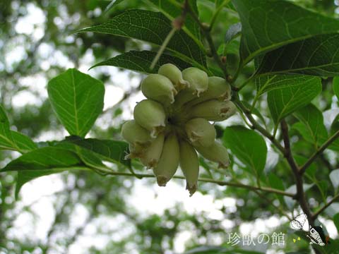 撮影日 2003/08/22 撮影地 東京都江戸川区 特徴 ・エゴノキに成っていた ・エゴノキの実とは違いモンキーバナナのような形で房になる 中の虫はすでに出てしまったのか、虫瘤の先には穴があいていた(それでも開いて見れば中に虫が残っていたかも)。虫は>[5][6][7]