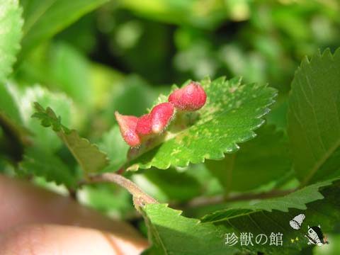 ・ニレの木の葉の一部がふくらんでできたもの。木はアキニレと思うが定かではないので疑問符つき。
