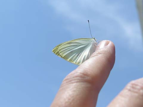 …これにはちゃんと黄色い部分がある。尻のほうまで黄色いからモンシロチョウだ。