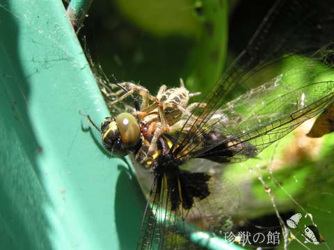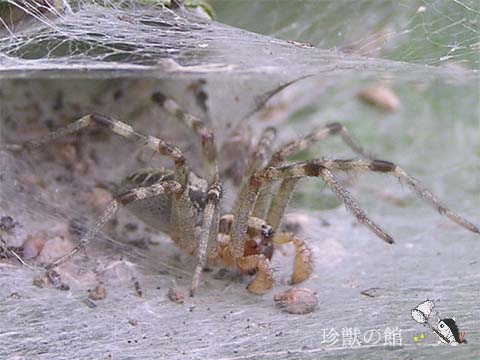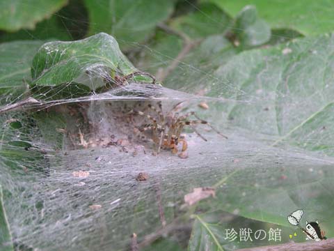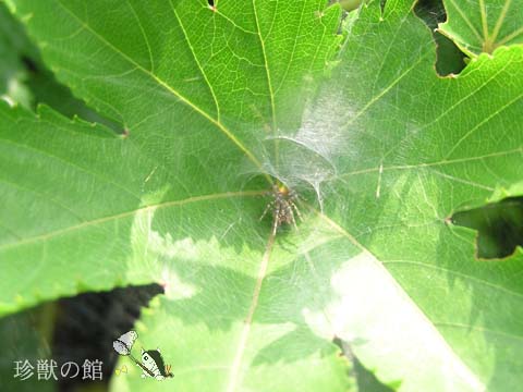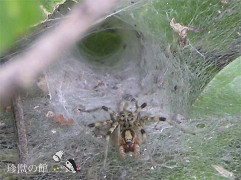 ・網の一部に洞窟状の穴をつくって隠れている>[