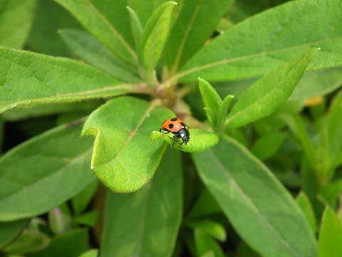 科名 テントウムシ科 学名 Coccinella septempunctata 中名 七星瓢蟲 撮影日 2004/05/14 撮影地 東京都葛飾区 特徴 ・体長は7mmくらい ・前翅が鮮やかな赤でツヤがあり、くっきりと黒い星が七つある ・頭は黒い これに似て星が 9 個あるのはココノホシテントウ。11 個ならジュウイチホシテントウ。左の写真の個体は羽化直後だったのオレンジ色だが普通はもっと真っ赤。