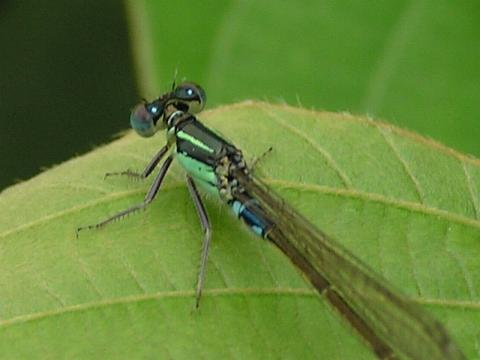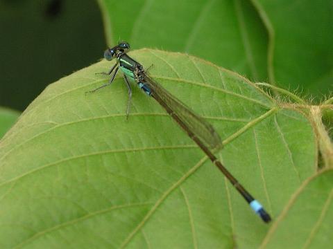科名 イトトンボ科 学名 Ischnura senegalensis 中名 ? 撮影日 2003/07/16 撮影地 東京都江戸川区 特徴 ・独特の細い体 ・翅をたたんでとまる ・アジアイトトンボより大きめ ・眼後紋が後頭部の色と離れている ・腹の八節目が青い アオモンのメスは、赤いものと、オスと同色のものがいるらしい。