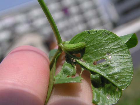 科名 ゾウムシ科 学名 Hypera postica 中名 撮影日 2007/04/12 撮影地 東京都葛飾区 特徴 ・ごく小さな芋虫で体色は緑色。 ・黄色い線がある。 ・マメ科植物を食害する。 1980年代に貨物にまぎれてヨーロッパから流入したと思われる新しい外来昆虫。写っている葉はシロツメクサ。食い荒らされた葉>[2] 他の写真 [1][2] |