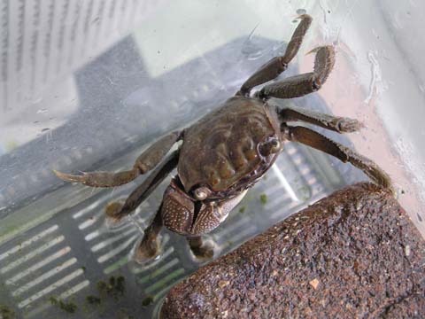 中川や大場川に普通にいるらしいが、写真のものは川から何百メートルも離れた道ばたを歩いていた。誰かが飼っていたのが逃げたのかもしれない。
