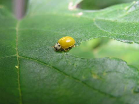 科名 テントウムシ科 学名 Illeis koebeli 中名 撮影日 2008/07/10 撮影地 東京都葛飾区 特徴 ・ 一緒に写っているのはクワ樹の葉。孵化させてみたところ、ごくごく小さなテントウムシの幼虫になったが、小さすぎて写真にとれなかった。クワ樹にはうどんこ病がつきやすく、近くに成虫・幼虫ともに沢山いる。