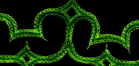 これはベストの袖口に刺繍したもの。スキャナーを買ったばかりのころに面白がって布から直接スキャンしてみたものだから全体に暗くなってしまった。でも、縫い目がハッキリ見えて面白いかもしれない。見ての通りチェーンステッチだけでできている。