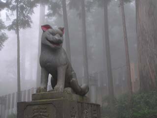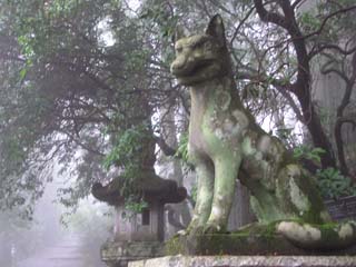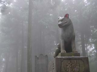 とかなんとか言ったかどうかはわかりませんが、とにかくタケル君はかわいそうに、東国で天皇に逆らっている豪族たちをやっつけに行ってたわけです。 そうしたある日、タケルは秩父の山中でとても美しい景色をみつけました。タケルがその景色に見とれてると、そこに「山犬」が現れました。山犬というのはニホンオオカミのことです。 タケルは山犬に導かれ山に分け入り、そこに、この美しい国を作ったイザナギ・イザナミの神を祀り、それが三峯神社のもとになりました。タケルを導いた山犬は、いまでも三峯神社のお使いとされています。 |