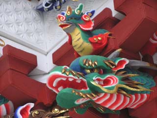 ちなみに、彫刻の色は何年かに一度、京都の職人さんに塗り直してもらうそうです。塗ってから五年くらいたたないと本当の味は出ないとのこと。 |
