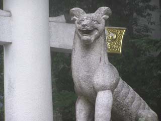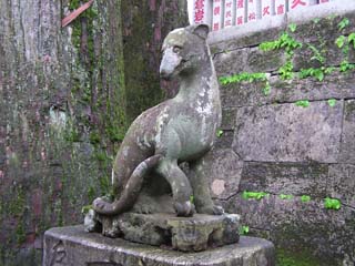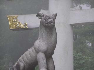 下はその拡大図。狛犬とも違うし、おいなりさんの狐ともちょっと違うでしょ? |