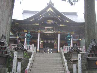 そんでもって左の写真が三峯神社の本殿です。神社の規模としてはそれほど大きくはないんですけど、彫刻のたぐいが日光の東照宮もかくやというほど立派です。 |