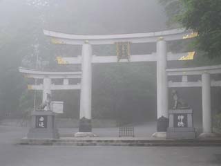 三峯神社は杉の林の中にたってます。霧に漂う杉の香りがたまらなく気持ちが良いです。