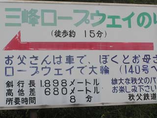 車持ってない人は、秩父鉄道っていうのに乗って三峰口で降りて、ロープウエイを使う方法もあります。この写真はロープウエイ入り口。入り口といってもこの先さらに何百メートルか歩かないとたどり着かないらしいです(笑)