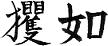 訓読み : おおざる 大きなサル 親サルなどという意味。また、何かを手で打つ動作を表す文字である。タカやハヤブサなど、足で獲物を捕らえる猛禽類のことを 攫鳥と言うので、攫如もまた、手の器用なさまを表した名前なのかもしれない。 |