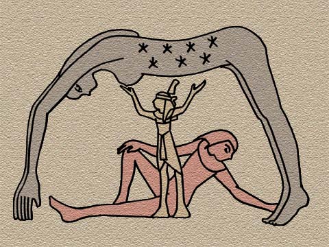 | ところで、『山海経』とエジプト神話の共通点については、平凡社ライブラリーの『山海経 中国古代の神話世界』の後書きで訳者の高馬三良氏が「重が天をささげ、黎が大地をおさえるのに似た神話がエジプトにある」と指摘したのが有名だ。具体的にどう書かれているか引用してみよう。 |