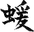 漢和辞典には出ていない文字だが、おそらくテナガザルのこと。漢字は片(へん)で意味を、旁(つくり)で発音を表すが、応援の「援」を見てもわかるとおり、この文字の旁は「エン」という音を表している。そして、虫(蟲)は蛇や獣なども意味する場合があるので、「猿」と同じ意味の文字ということになる。 |