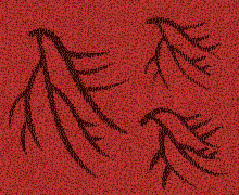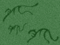 篆書とかいう、印鑑によく使う字体の 馬 を散らしてみただけ。この画面では背景とのコントラストで真っ黒く見えるかもしれないけど、全面に壁紙として配置するとちゃんと馬の字が見えます。 |