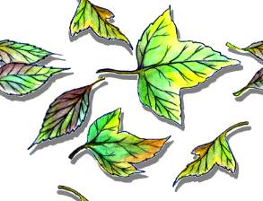 やっぱりフウの葉とケヤキの葉。水棲色鉛筆で描いたのをスキャナーでとりこんで影を付けてみた。
