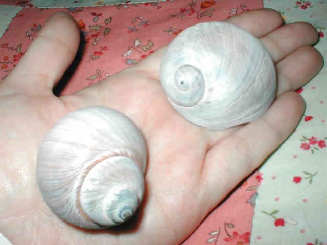| タマガイの一種だと思うのですが、何タマガイかはよくわからないのでございます。 | 右の貝殻はツメタガイ