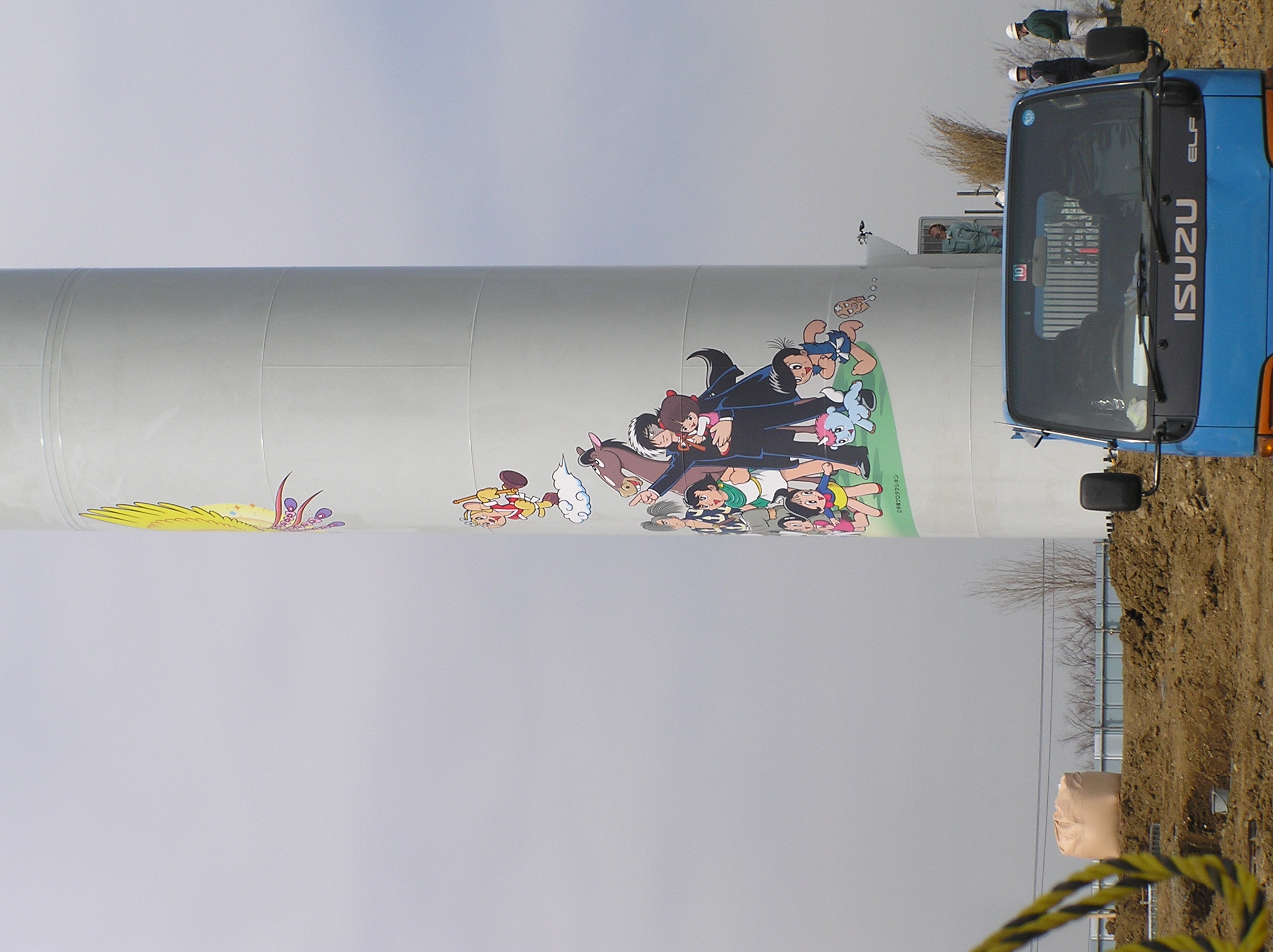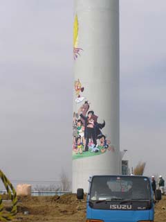 近づいてみたら工事中でした。風車は完成してるみたいだけど、まわりを整備してるみたいです。あわよくば白い柱をべたべたさわりまくって帰ろうと思ったのにー。でもこれなら工事が終わったら近づけそう。中央防波堤のやつは人が近づきにくいから、わざとこっちに作ったのかもね。 |